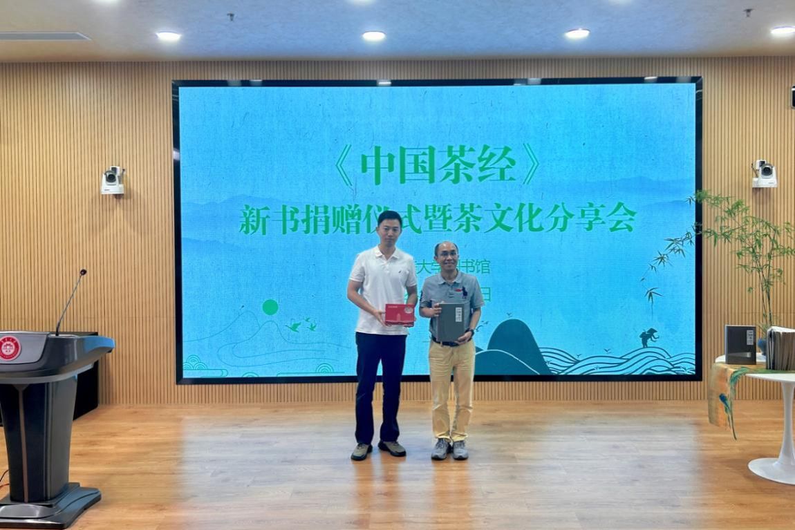 戴乐阳馆长接受捐书并表示感谢。赖世伟校友分享了自己投身中国茶叶推广和茶文化传播的经历,介绍了翻译《中国茶经》和寻求出版的艰辛历程,并现场回答了在场师生的提问。